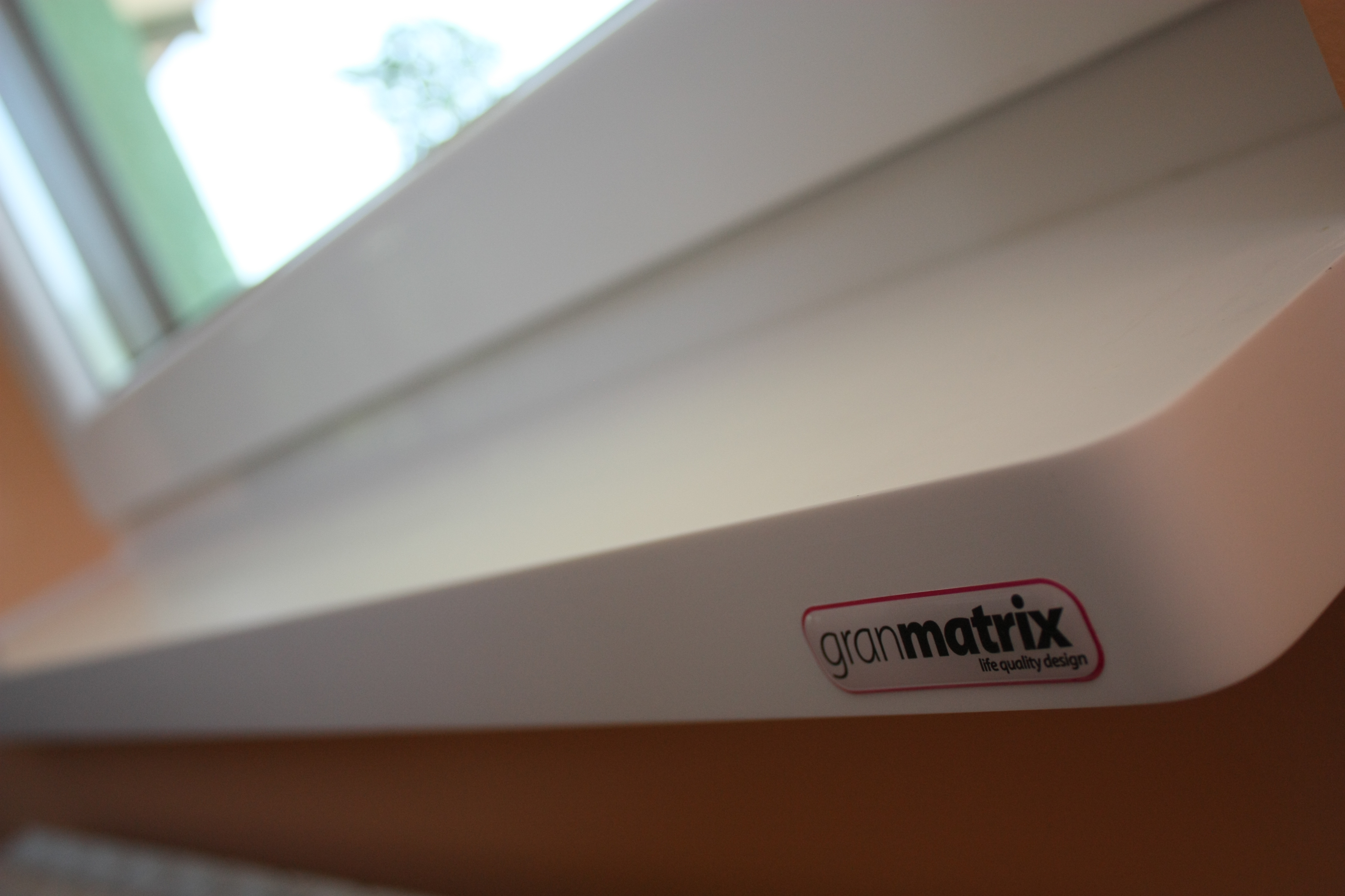 Granmatrix is resistant to weathering and UV rays, so it can be used for window sills in both indoor and outdoor use. Window sills are made to measure and are available in different combinations of shapes and colors.